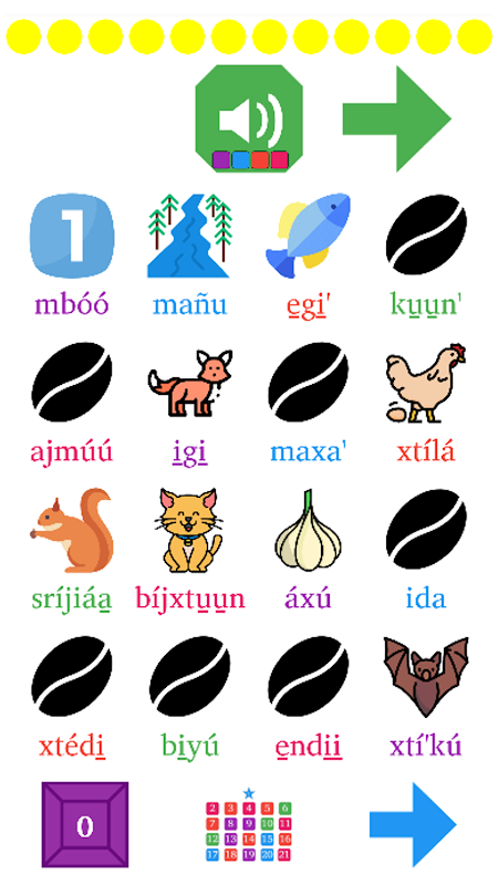 107 trò chơi xóa mù chữ cho tôi'pa̱a̱ từ Acatepec, bao gồm ghi nhớ, tìm từ, chữ cái đầu tiên là gì, chữ cái còn thiếu là gì, xổ số, trò chơi mười lăm và nhiều trò chơi khác.