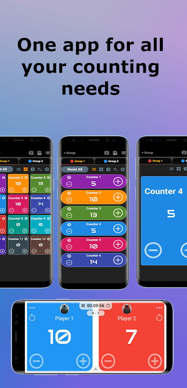 Multi Counter giúp bạn dễ dàng theo dõi hàng tồn kho, điểm số, thói quen hoặc bất cứ thứ gì bạn cần đếm. Tạo bộ đếm, sắp xếp chúng thành các nhóm và xem số liệu thống kê nhóm tức thì. Xuất dữ liệu của bạn bất cứ lúc nào và sử dụng bảng điểm tích hợp với bộ đếm thời gian để theo dõi các trận đấu hoặc sự kiện. Sắp xếp thông minh hơn, tính toán nhanh hơn và không bao giờ mất dấu vết nữa.