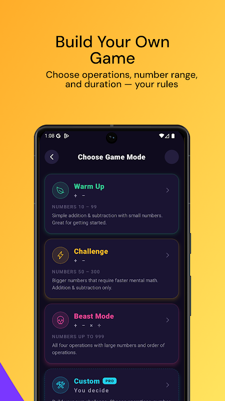 Dù bạn muốn rèn luyện kỹ năng toán, thử thách con cái hay thi đấu với bạn bè, MathIt biến toán học thành niềm vui và sự hứng khởi. Tải ngay và bắt đầu trận đấu toán học đầu tiên!