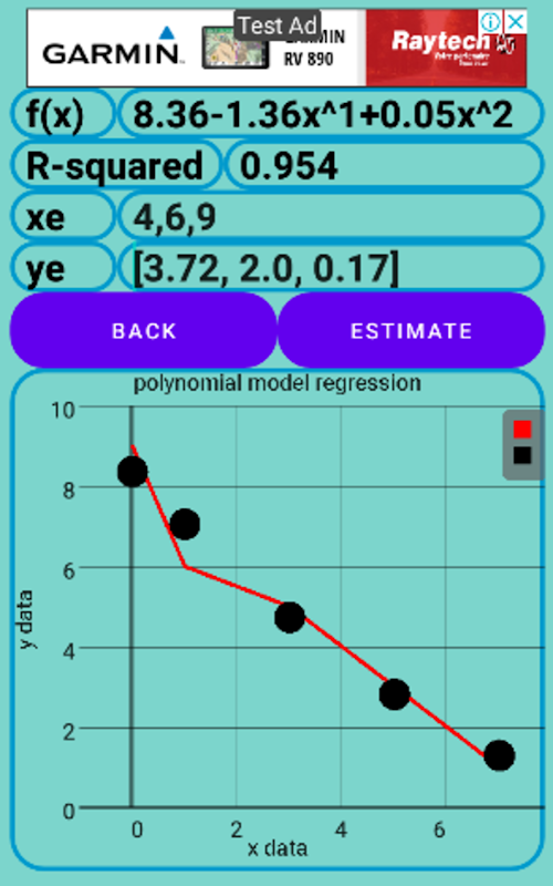 Bạn có thể xem dữ liệu của mình bằng cách nhấp vào nút XEM, để chọn mô hình hồi quy thích hợp từ danh sách, sau đó nhấp vào nút CALC để tìm hiểu các hệ số của mô hình cũng như Hệ số xác định