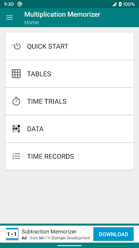 Times Tables cung cấp môi trường học tập không căng thẳng. Đây là phiên bản hiện đại của thẻ flash bảng cửu chương liệt kê tất cả các bảng cửu chương. Khu vực này hiển thị toàn bộ bảng cửu chương, từng hàng một. Bạn có thể hiển thị hoặc ẩn câu trả lời cho bất kỳ bài toán nhân nào bất kỳ lúc nào. Không có câu hỏi, không giới hạn thời gian, không theo dõi dữ liệu.