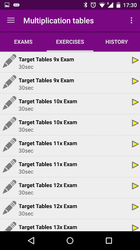 In the “History” screen, it is easy to track the results of the solved exercises. Furthermore, the completed tables can automatically be sent to the parents set email addresses.