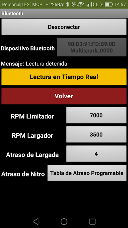 La aplicación permite la configuración y visualización de datos del Multispark 200 mediante una conexión bluetooth.