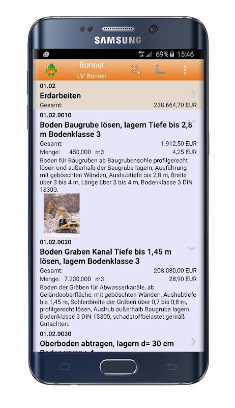 MWM-Piccolo cho Android hỗ trợ GAEB 90, GAEB 2000 và GAEB DA XML.