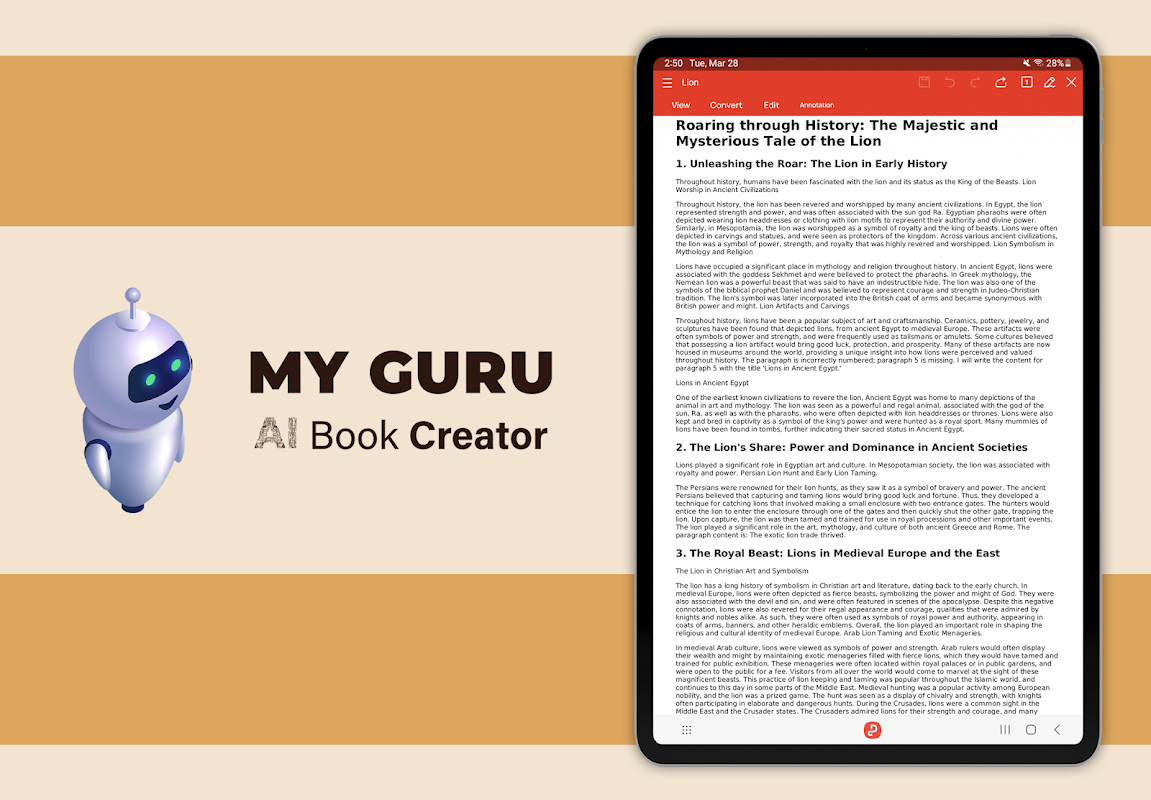 My Guru là một ứng dụng lý tưởng cho bất kỳ ai muốn tạo Sách điện tử một cách nhanh chóng và dễ dàng, cho dù họ là sinh viên, nhà văn hay chuyên gia kinh doanh. Ứng dụng này cũng là một công cụ tuyệt vời dành cho giáo viên và nhà giáo dục muốn tạo tài liệu học tập hấp dẫn cho học sinh của mình.