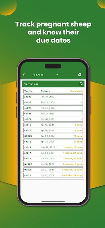 Tạo hồ sơ chi tiết cho từng con cừu. Theo dõi từng con cừu từ khi sinh ra đến khi xuất chuồng — giống, giới tính, số thẻ, cừu đực, cừu cái, nhóm, v.v. Nắm rõ đàn cừu của bạn từ trong ra ngoài.