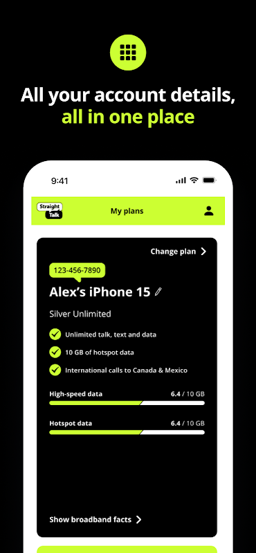 Quản lý gói cước di động của bạn thật tiện lợi và dễ dàng trên ứng dụng My Straight Talk. Truy cập toàn bộ thông tin tài khoản, bao gồm chi tiết gói cước, thiết bị, tùy chọn dữ liệu di động 5G và các đặc quyền, tất cả tại một nơi. Sắp ra mắt, quy trình kích hoạt mới và được cải tiến!