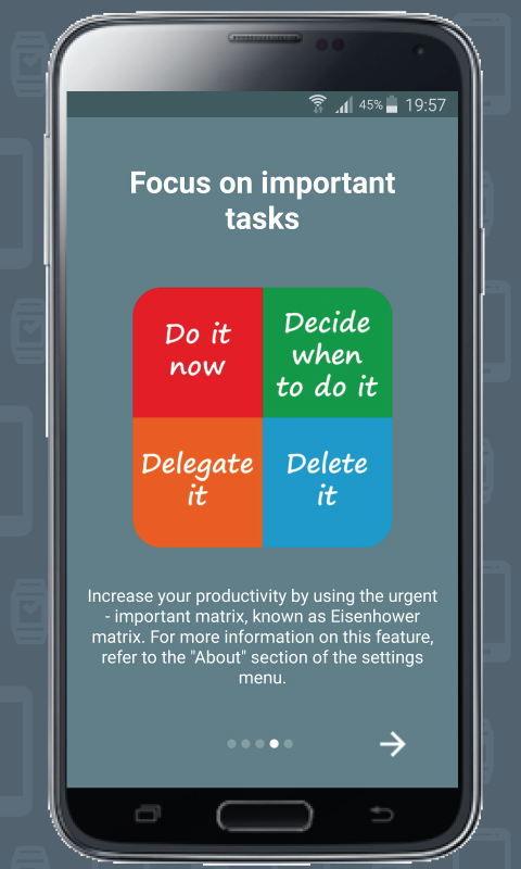 Increase your productivity by using the urgent - important matrix, known as Eisenhower matrix.
