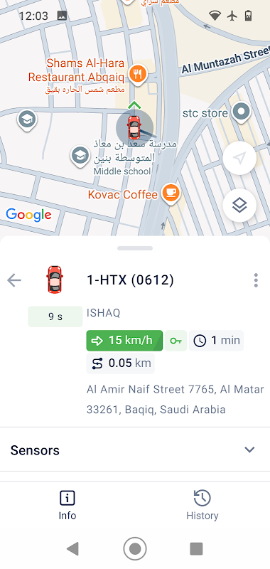 - Lịch sử. Kiểm soát các sự kiện của xe (di chuyển, dừng, nạp nhiên liệu, lượng nhiên liệu xả) theo thứ tự thời gian và hiển thị chúng trên bản đồ.