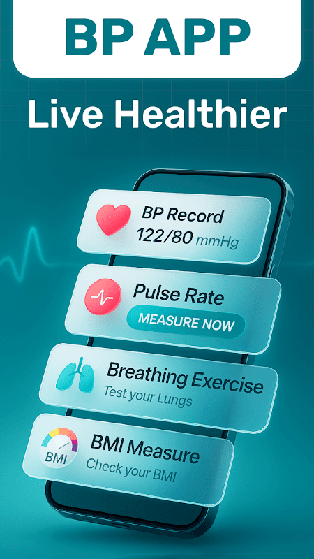 Ứng dụng đo huyết áp với chức năng theo dõi nhịp tim, BMI và các công cụ sức khỏe.