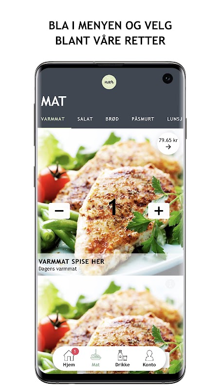 Thông qua ứng dụng Nær, bạn có thể đặt và thanh toán đồ ăn thức uống tại các nhà hàng và quán cà phê của nhân viên chúng tôi - trực tiếp từ điện thoại. Ngoài ra, bạn kiếm được điểm khách hàng thân thiết, bạn có thể mua thực phẩm dư thừa, tham gia các ưu đãi và tin tức độc quyền và bạn có thể duyệt qua thực đơn hàng tuần để lên kế hoạch cho ngày của mình.