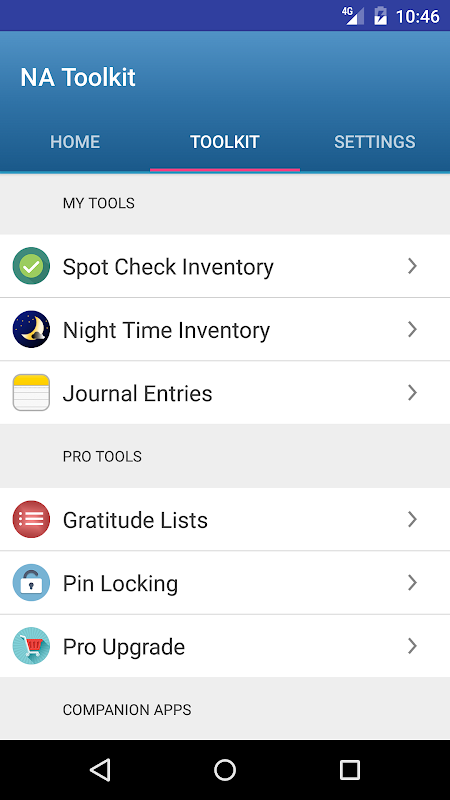 Narcotics Anonymous App- 4th step, night time inventory, gratitude list & more