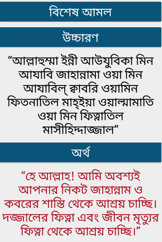 ইসলাম মুসলমানদের উপর পাঁচ ওয়াক্ত নামাজ ফরয করেছে। নামায শিক্ষা গ্রহণ করা প্রত্যেক মুসলিম নর নারীর জন্য ফরজ। আর এগুলো হল ফজরের নামাজ, যোহরের নামাজ, আসরের নামাজ, মাগরিবের নামাজ, এশার নামাজ। কিভাবে নামাজ পড়বেন তার বিস্তারিত আলোচনা করা হয়েছে।