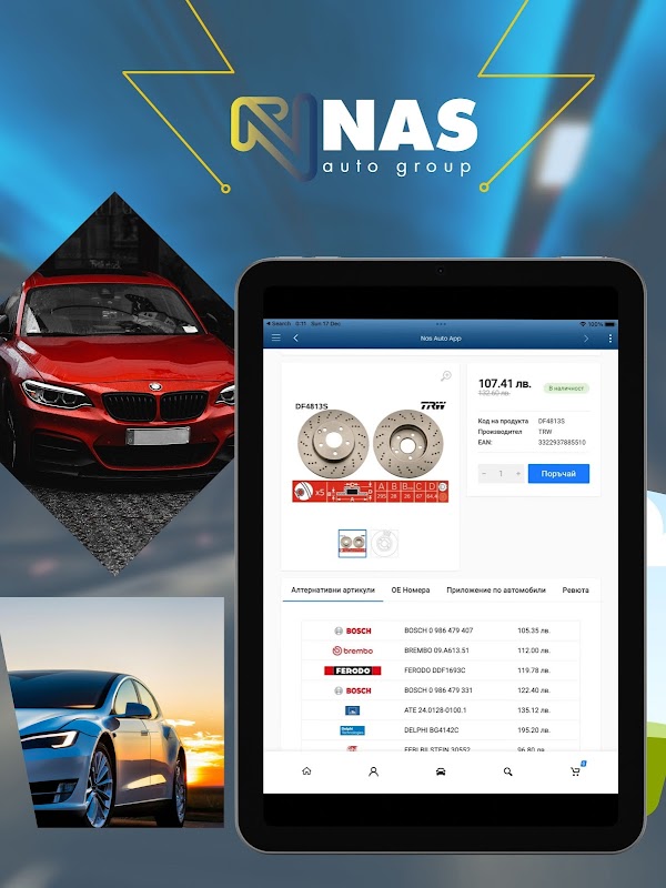 Trong ứng dụng có hình ảnh, số gốc, mô tả kỹ thuật và giá phụ tùng ô tô.