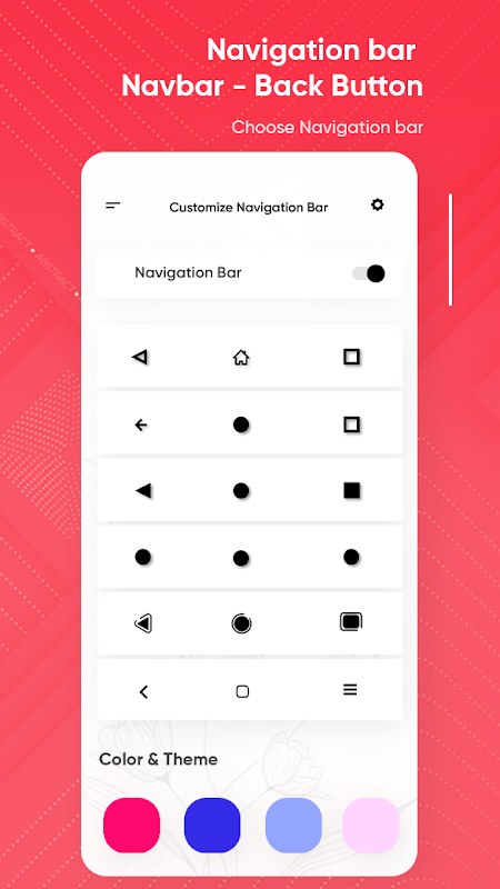 Thanh điều hướng - trình chiếu trên thanh điều hướng là một thanh điều hướng nhỏ xinh mà bạn có thể đặt ở bất cứ đâu trên màn hình để dễ dàng truy cập. Có thể dễ dàng thay đổi kích thước và di chuyển thanh điều hướng đến bất kỳ đâu trên màn hình. Ứng dụng này có một thanh điều hướng nhỏ xinh mà bạn có thể đặt ở bất kỳ đâu trên màn hình để dễ dàng truy cập. nhờ đó bạn có thể điều khiển điện thoại di động của mình bằng cử chỉ ngón tay đơn giản.