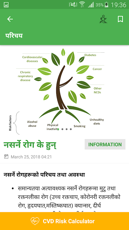 PHCRD NCD App provides a wonderful user interface to become acquainted with different aspects of non communicable diseases. With the App, users can use BMI calculator, CVD Risk Predictor Tool and become conversant with four NCDs mainly : CVD, Cancer, Diabetes and COPD. Users can also view latest news concerning NCDs in Nepal and can add articles to favorite list. To sum up, NCD App enriches you with tremendous knowledge regarding various credentials of non communicable diseases.