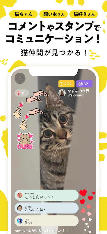 Tương tác với những người phát trực tiếp về mèo và những người xem khác bằng tính năng bình luận!