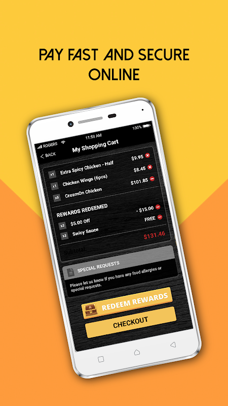 Với ứng dụng NeNe Chicken, việc đặt món ăn bạn yêu thích mang đi chưa bao giờ dễ dàng hơn thế. Đơn giản chỉ cần mở ứng dụng, duyệt menu, gọi món bằng một nút bấm và nhận thông báo khi món ăn của bạn đã sẵn sàng. Thanh toán trực tuyến nhanh chóng và an toàn.
