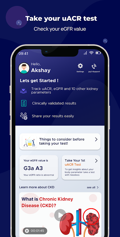 Bỏ qua những rắc rối khi phải di chuyển đến phòng thí nghiệm và chờ đợi hàng giờ để có kết quả. Ứng dụng của chúng tôi giúp bạn theo dõi sức khỏe thận cấp độ chuyên nghiệp ngay trong túi của mình. Cho dù bạn đang kiểm soát tình trạng thận hiện tại hay thực hiện các biện pháp phòng ngừa Bệnh thận mãn tính (CKD), Neodocs đều cung cấp các công cụ bạn cần để cập nhật thông tin về sức khỏe của mình.