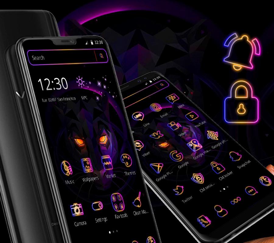💖 HD neon theme will totally change your smart phone to decorate. You will be happy by applying it, High-quality theme which will provide you dark black panther screen wallpaper and neon shiny icons to preferred the style. It consists of not only neon element, but also looks attractive on mobile phone as well as on the tablet. The combination of these elements makes this neon black panther launcher theme more distinguished and personalized. Why are you getting late? Download and apply it to decorate your phone.