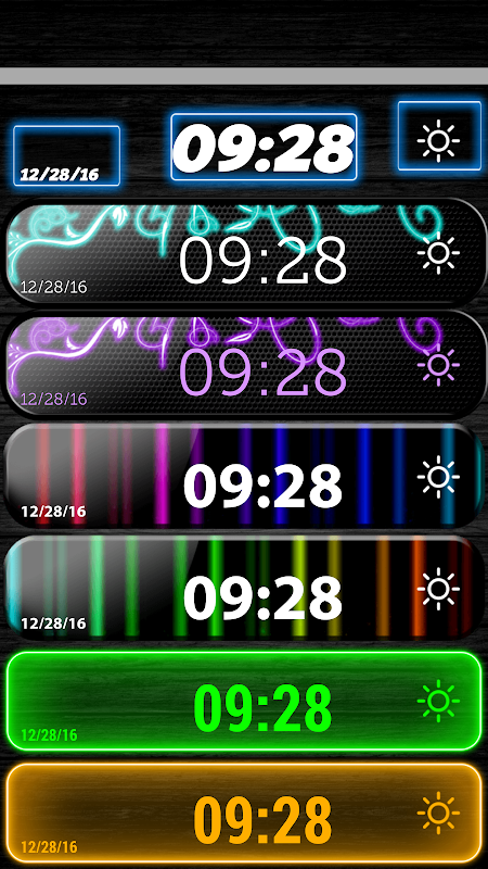 The most useful digital clock with date is a must have! It is better than all other neon digital clock widget! If you already have a night clock, but you are searching for an upgrade to match your neon themes for Android™, get this led alarm clock free! This glow clock gadget brings neon light to you! The free time widget before you offers some pretty vivid neon pink, neon blue and your favorite NEON GREEN digits! It is also a digital clock with weather app which will give you the feeling of glitter art like no other. With its neon background color, this neon alarm clock skin is so AWESOME that you wouldn't believe! Get this watch widget to apply some funky psychedelic effects on your cell phone! Make it trendy, JOIN THE NEON MANIA NOW!