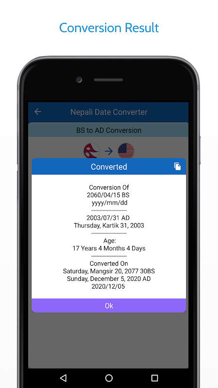 Chuyển đổi ngày tiếng Nepal sang ngày tiếng Anh (Chuyển đổi ngày ngoại tuyến). Tính tuổi