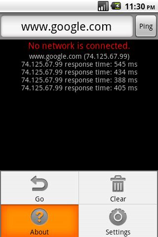 If you have pinged more than one host, the most recent hosts will appear in a list when you touch or click the host entry field at the top of the screen.