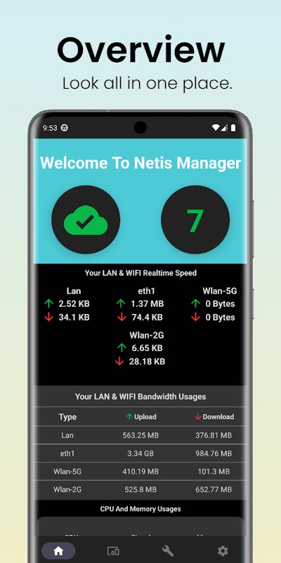 Quản lý và giám sát bộ định tuyến Netis của bạn. những gì bạn có thể làm trong ứng dụng này: -