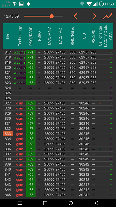 Đối với Android 4.3 trở lên. Hỗ trợ giới hạn hai SIM cho Android 5.1 trở lên. Nếu không có tệp BTS, ARFCN và Band khả dụng cho Android 7 trở lên. Để xem Tháp di động trên bản đồ, tệp BTS phải được tải.