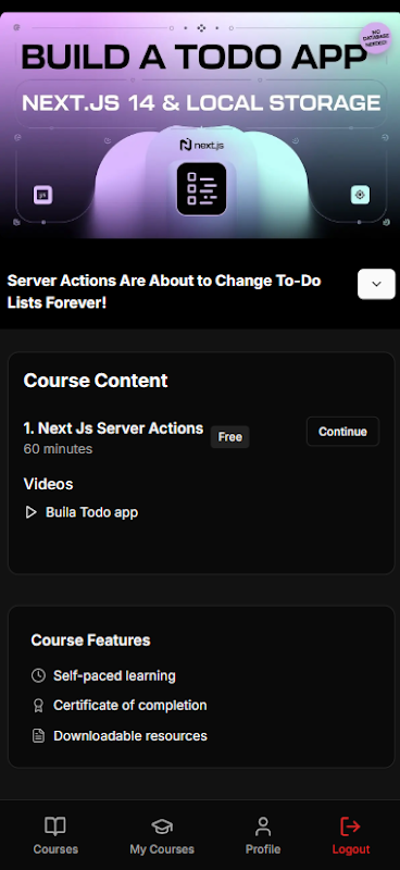 Khám phá nền tảng tối ưu để phát triển kỹ năng với nextcode! Ứng dụng của chúng tôi cung cấp nhiều khóa học được thiết kế chuyên nghiệp để giúp bạn nắm vững các kỹ năng theo yêu cầu như phát triển web, tiếp thị kỹ thuật số, thiết kế đồ họa, v.v.