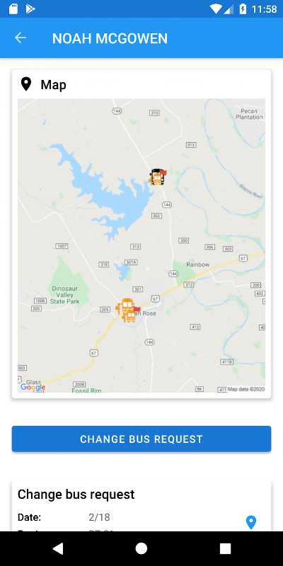 Phụ huynh có thể thay đổi lịch trình xe buýt, theo giao thức của trường hoặc đến đón phụ huynh. Điều này có thể được thực hiện vào ngày hiện tại hoặc trước và phụ huynh nhận được xác nhận cùng ngày từ trường.