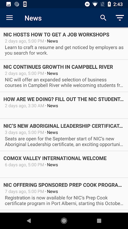 The myNIC app brings all the NIC services you need with you, wherever you are. Log in with your myNIC username and password to plan your schedule, register for courses, see your timetable, view assignments and stay connected with the NIC community.