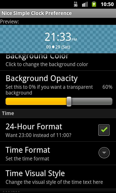 Sau khi thêm các widget đồng hồ vào màn hình chính, khai thác nó sẽ mở cửa sổ cấu hình. Bạn có thể thêm nhiều hơn một "Nice đơn giản Clock Widget" để màn hình của bạn và mỗi người có thể có các cài đặt riêng của nó.