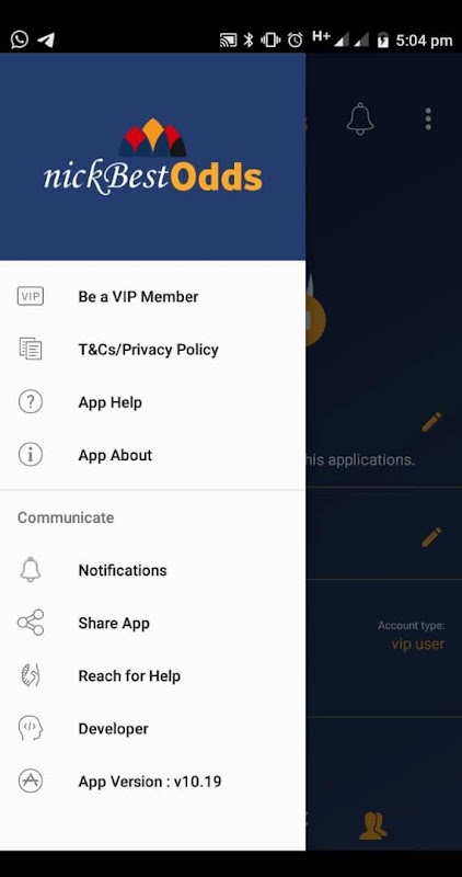 The last view to see at the bottom-most part of the app. This navigation has several navigation menus the first displays the HOME SCREEN, the second displays VIP ODDS where you need to administrator permission to access, third on the list is the live football Fixtures across the globe, next to it is also a VIP section where all premium sporting Odds tips