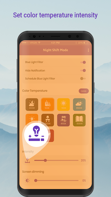 Ứng dụng này có bộ lọc chăm sóc mắt giúp chuyển điện thoại của bạn sang chế độ ban đêm bằng cách tắt ánh sáng xanh, giảm độ sáng màn hình và hiển thị ánh sáng màn hình.