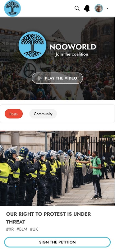 Welcome to NooWorld Beta. NooWorld brings together climate, ecological and environmental activists all over the world by combining nonviolent direct action, civil disobedience, and regenerative culture trainings with cutting-edge community-building tools. We help like-minded groups to discover each other and build coalition. Inspired by the youth activists of Fridays For Future, The Sunrise Movement, and Extinction Rebellion among so many others, NooWorld is determined to dissolve the silos in the climate movement and create a mutual aid network for a common cause. Our mission is to deliver tools—soon to be multilingual—that create powerful global coalitions to force governments and corporations to avoid tipping points, biodiversity loss, and social and ecological collapse.