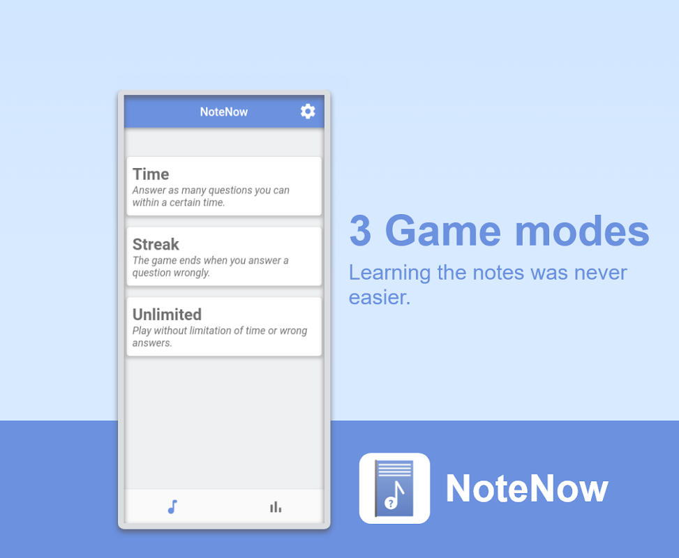 Music theory is essential when you want to learn an instrument. NoteNow teaches you the notes with fun so that you can play instruments like the piano, the guitar or a violin. choose between different game modes, adjust time limits, take the pressure from learning.
