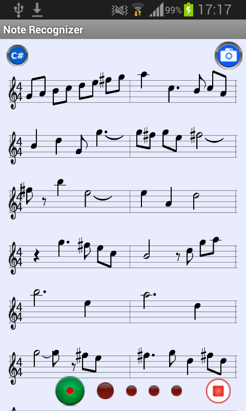Các Lưu ý Recognizer có nghĩa là cho những người đang tham gia nghiêm túc trong việc đưa âm nhạc tích cực. Ứng dụng này không phải là một trò chơi. Các Lưu ý Recognizer phân tích các tần số sân mà bạn hát hay chơi, và cung cấp cho các tên ghi tương ứng. Rất hữu ích cho các ca sĩ, những người cần tìm phải bắt đầu chú ý của một bài hát. Hoặc nếu bạn muốn biết chìa khóa của một bài hát; hát những loại thuốc bổ, và bạn sẽ có được những tên lưu ý của khoá. Cũng tuyệt vời như là một bộ chỉnh cho guitar, hoặc kiểm tra ngữ điệu của bạn trên sáo, violin hay các nhạc cụ. Không có đồ họa ưa thích, nhưng bố trí hoàn hảo có thể nhìn thấy cho các địa điểm tối và môi trường thực tế ảm đạm. Chọn từ các hệ thống lưu ý đặt tên khác nhau như Ấn Độ Sargam hoặc Do Re Mi.