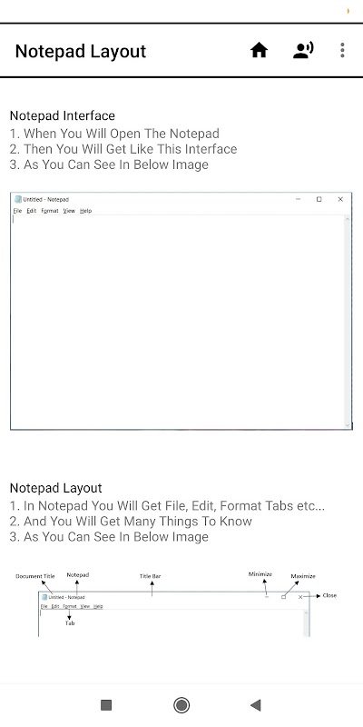 bạn có thể học notepad từ ứng dụng này rất dễ dàng từng bước với nội dung