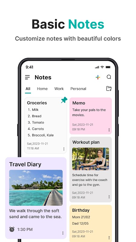 Sử dụng Notes Notepad và Notebook để lên kế hoạch cho các sự kiện, tạo nội dung mới và theo dõi các nhiệm vụ quan trọng. Bạn có thể ghi chú, thêm hình ảnh và viết ghi nhớ trên điện thoại của mình.