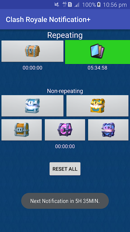 With this app, you can precisely track your free chests, card requests or any chest currently unlocking!
