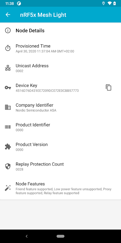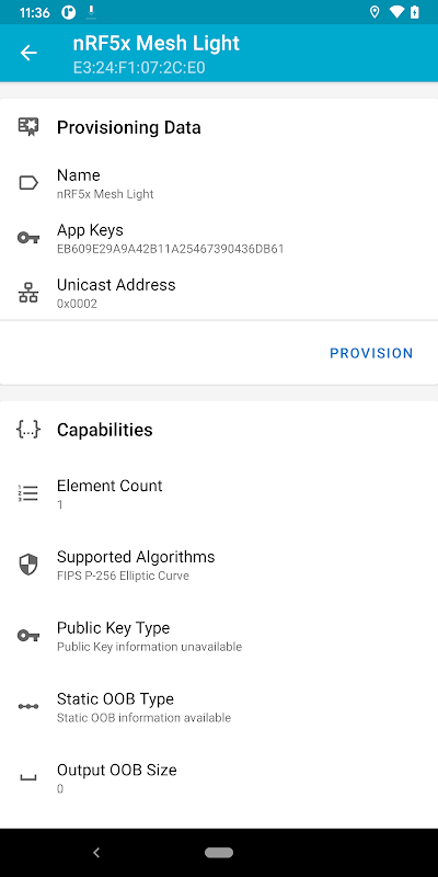 • Cung cấp: Việc triển khai một Node mới đơn giản chỉ bằng một lần nhấn nút, phiên bản này hỗ trợ xác thực Numeric OOB và xác thực tĩnh (Không có đầu vào của người dùng). nRF Mesh sẽ tự động xử lý địa chỉ Unicast cho bạn, Cũng có thể ghi đè điều đó bằng cách chỉ cần nhập các địa chỉ mong muốn.