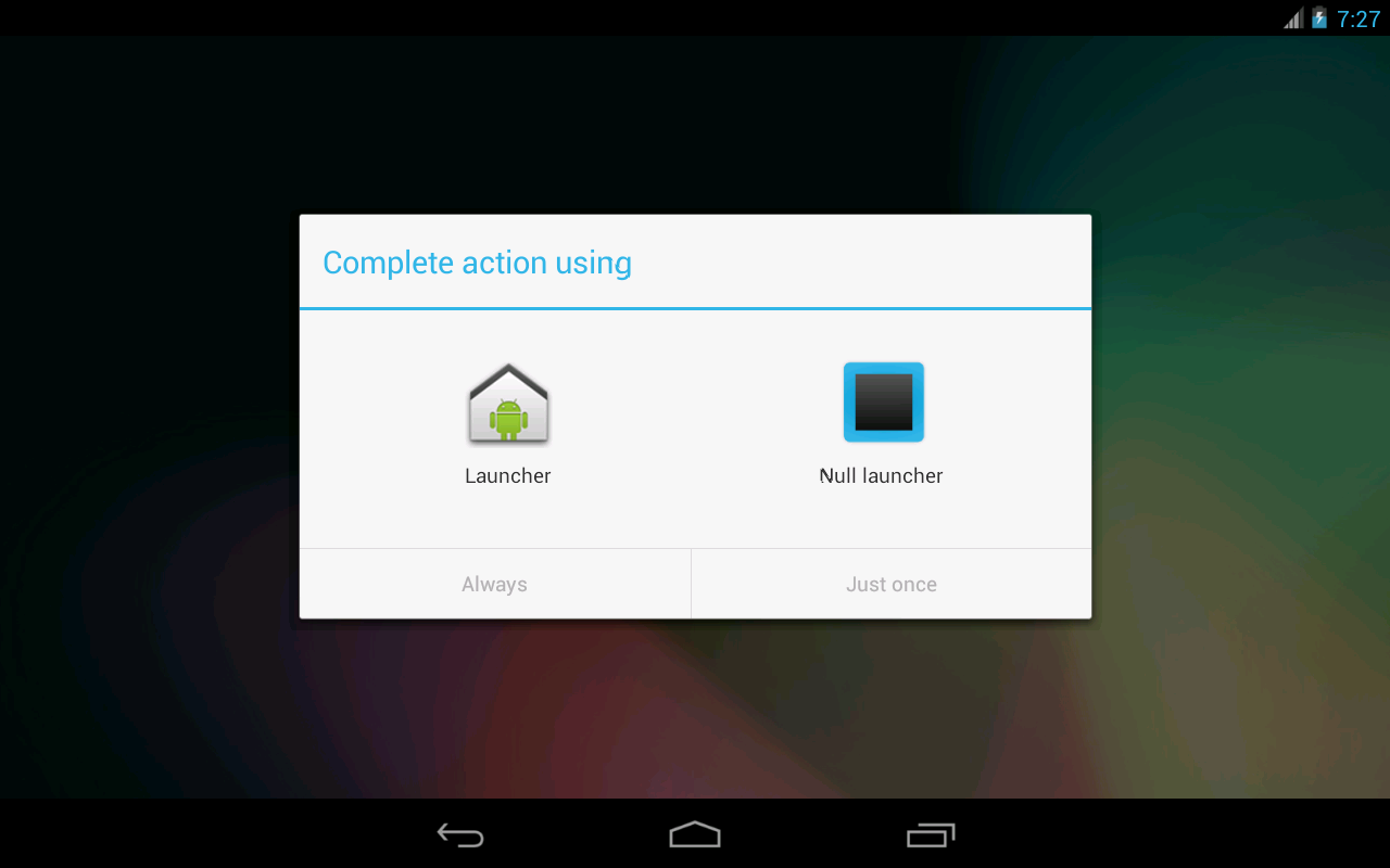 If you've accidentally switched to Null Launcher with no way to get out, pinch-zoom on the wallpaper and you can change back to your old launcher.