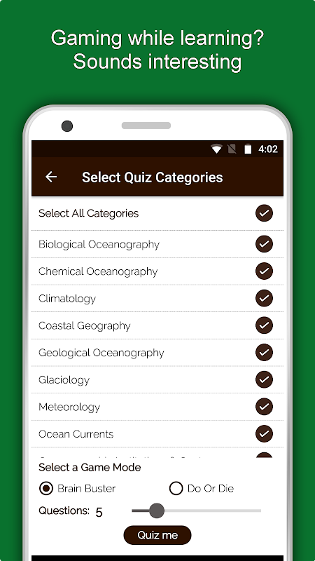 Từ điển Hải dương học - Điều khoản & Định nghĩa Ứng dụng có mặt để hỗ trợ bạn tìm hiểu sự đa dạng vật lý và sinh học của biển. Với hơn 4000 thuật ngữ và ý nghĩa của chúng, Ứng dụng Nghiên cứu Hải dương học này sâu như một đại dương. Tính năng Dòng thời gian của Hải dương học sẽ cho bạn biết về những phát triển trong lĩnh vực Hải dương học kể từ đầu thời gian. Không chỉ vậy, tính năng Lịch sử lặn sẽ cung cấp cho bạn mô tả chi tiết về lịch sử các bộ đồ Scuba Lặn với các nhà phát minh của họ. Để học nhanh, ứng dụng này có rất nhiều câu đố để cải thiện kiến thức và thử thách việc học của bạn.