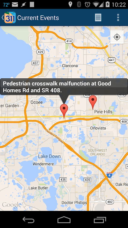 Cư dân OCFL 311 hỗ trợ Orange County Florida để báo cáo các vấn đề cộng đồng địa phương không khẩn cấp thuận tiện và hiệu quả bằng cách gửi các báo cáo liên quan đến động vật, biển báo giao thông, ổ gà, graffiti, sửa chữa vỉa hè, và nhiều vấn đề phổ biến khác. Nhiều người trong số các báo cáo này có thể được gửi một cách nhanh chóng và nặc danh. Những người dân cung cấp thông tin liên lạc của họ có thể xem trạng thái của các báo cáo của họ để đảm bảo độ phân giải thích hợp. Ngoài ra, OCFL 311 bản đồ vị trí thuận tiện về các vấn đề cộng đồng quan trọng để người dân có thể nhận thức được sự kiện có thể ảnh hưởng tới khu vực.