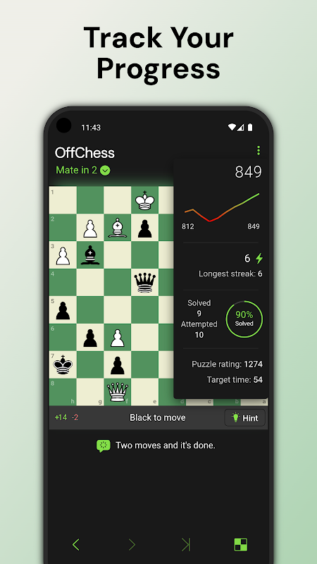 3. Độ khó thích ứng – Câu đố cờ vua ngoại tuyến điều chỉnh theo cấp độ kỹ năng của bạn khi bạn cải thiện.