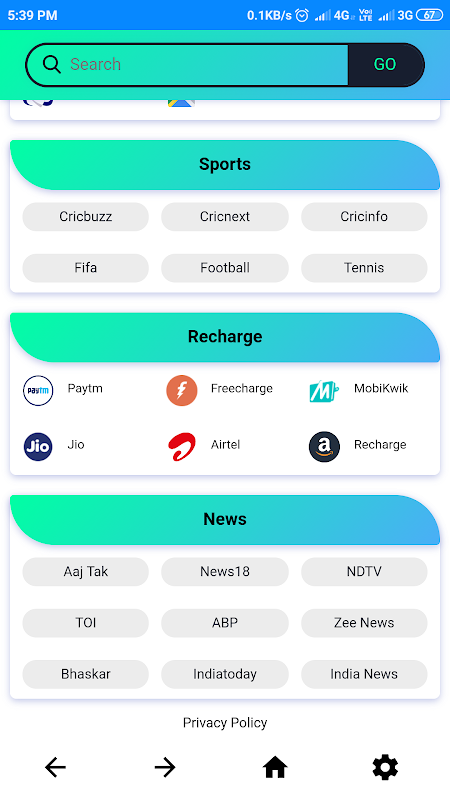 With our super fast and light All in one App Browser you have to browse all the Shopping, news, sports, food, entertainment, health, Social Network, in a simple click.
