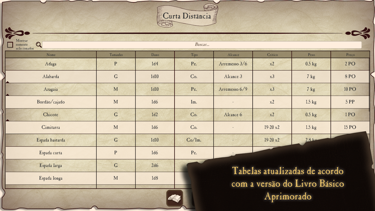 - Lista das tabelas do Livro Básico Aprimorado (Equipamentos, Condições, Itens Mágicos e muito mais!)