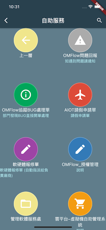 OMFLOW Mobile cho phép bạn thực hiện yêu cầu bằng cách sử dụng dịch vụ tự phục vụ,