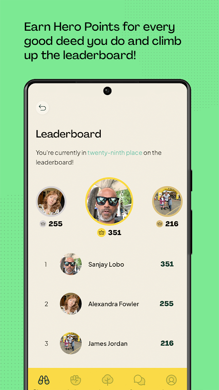 Kiếm điểm anh hùng cho mọi hành động tốt bạn làm, leo lên bảng xếp hạng và khoe với bạn bè của bạn! Ứng dụng OnHand có tính năng theo dõi tình nguyện viên và giảm CO2e tự động, với các trang tác động để hô hào về những điều tốt đẹp mà bạn đang làm.